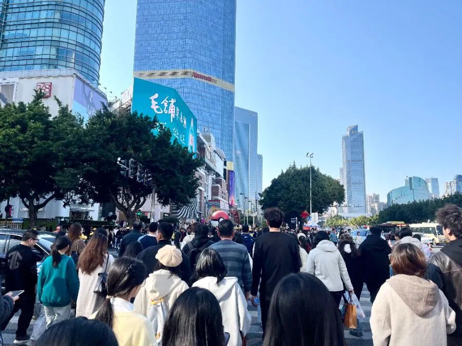 在广州,陈家祠等热门景点响起了“当天门票已售罄”的喇叭通知,北京路街头哪怕到了晚上11点仍然人山人海;天河城商圈,商场里、广场外到处人头攒动;广东省非物质文化遗产馆内,非遗体验课堂同样人气“爆棚”……不少市民都惊呼:“怎么感觉人一年比一年多!”